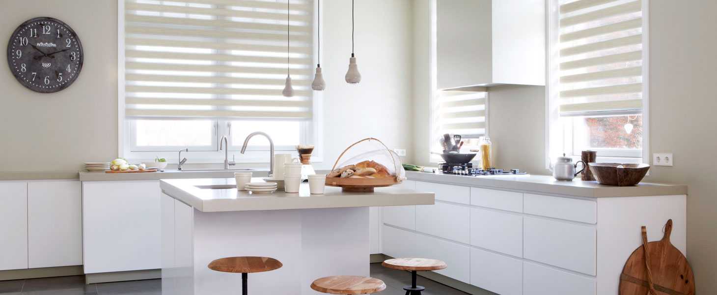 пространство рулонными шторами и при этом минимизировать световой зазор между полотнами ткани в
